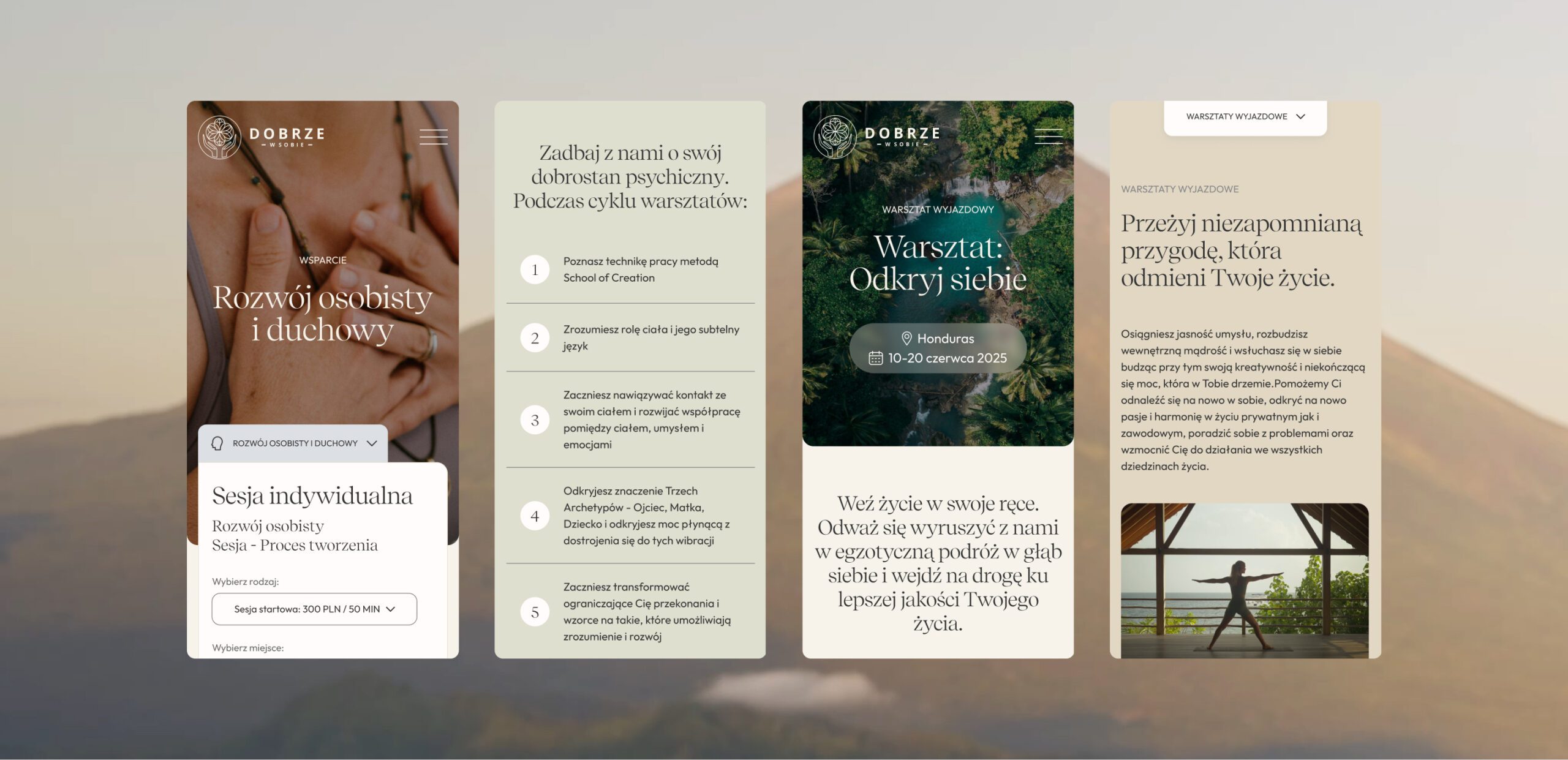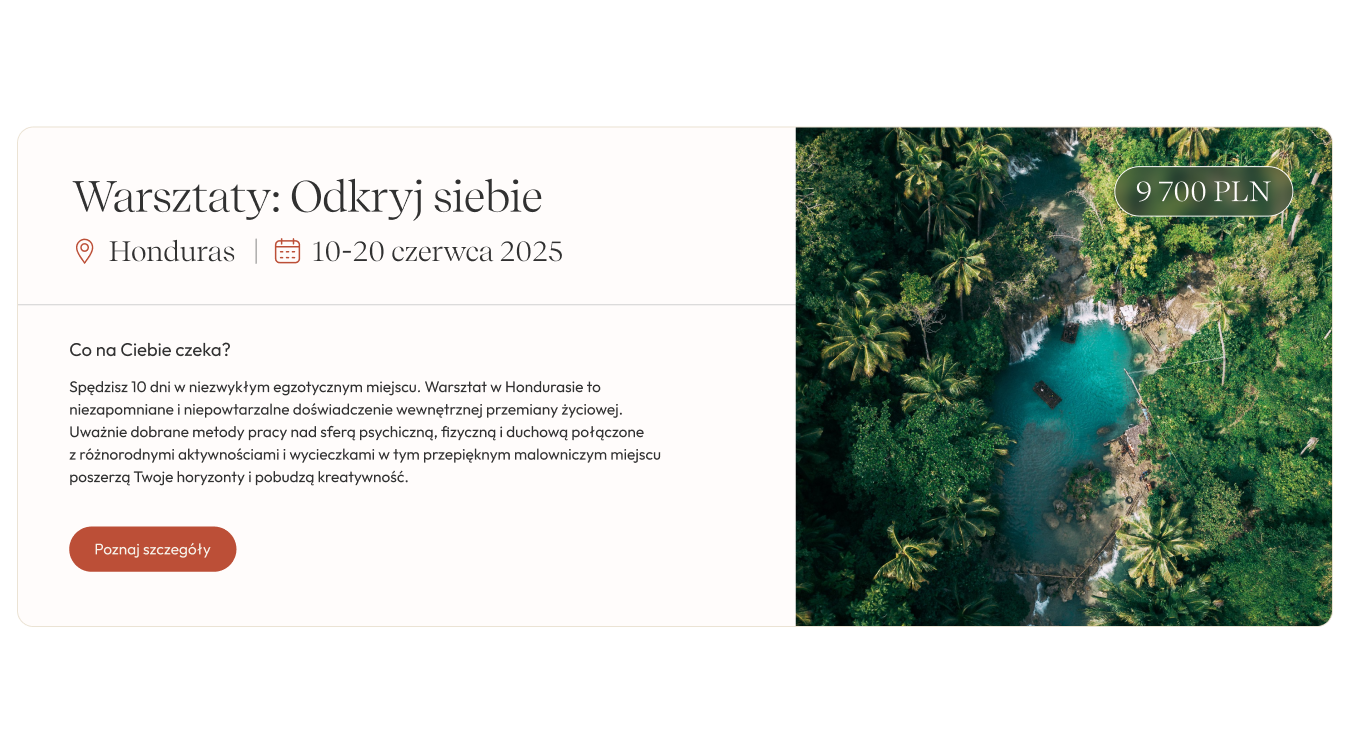 Zaprojektowałyśmy stronę internetową opartą na czytelnej architekturze informacji i doświadczeniu użytkownika (UX), wykorzystując jasną kolorystykę, przestrzeń wizualną i subtelne animacje. Kluczowe elementy interfejsu zostały zaprojektowane tak, by wspierały holistyczny charakter marki i budowały atmosferę spokoju oraz obecności. Dzięki przemyślanemu projektowi graficznemu i spójnemu UI, powstała funkcjonalna, estetyczna strona www, która nie tylko informuje, ale też wspiera emocjonalnie i zachęca do skorzystania z oferowanych usług – konsultacji oraz warsztatów psychologicznych.